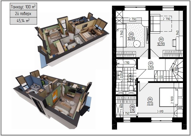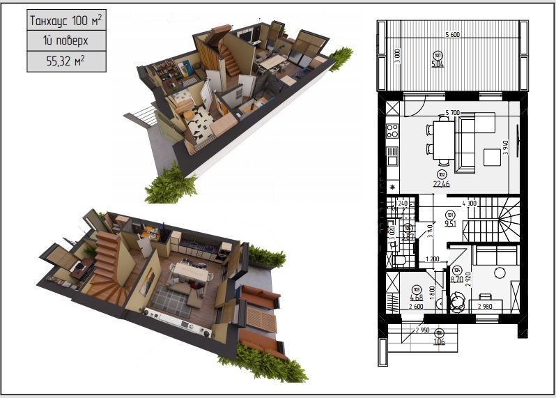 Площа кожного таунхаусу: 90 м2 та 104 м²