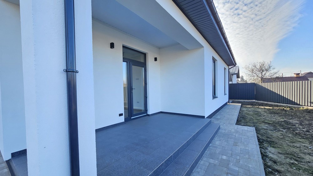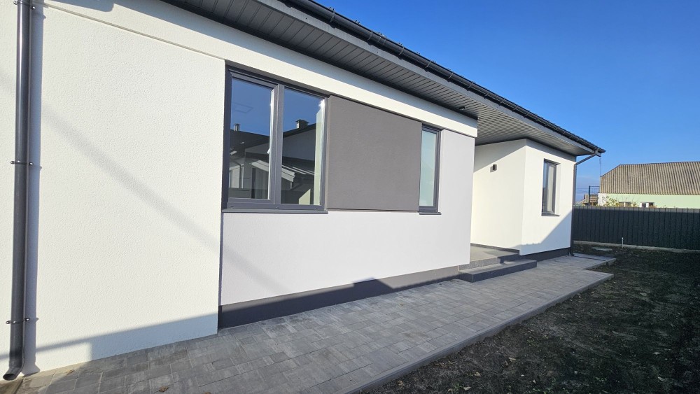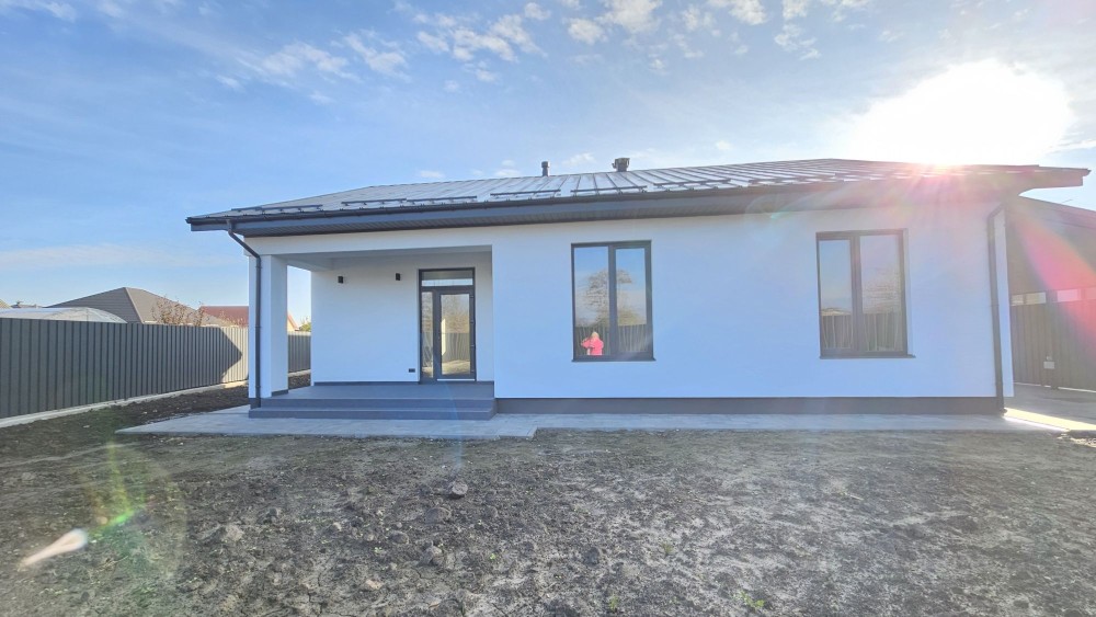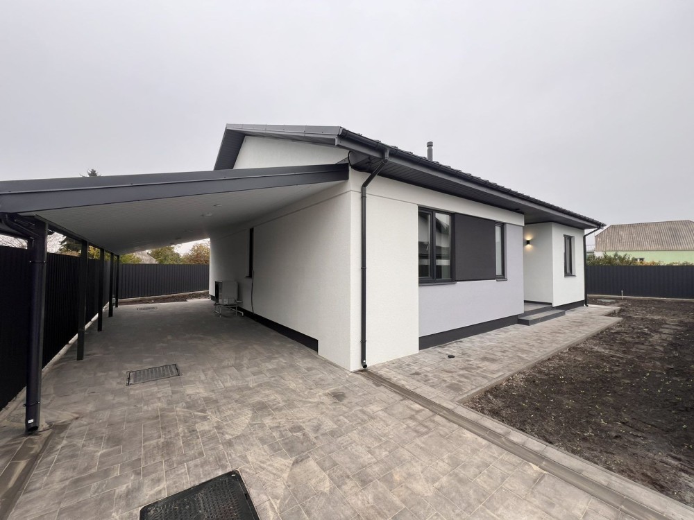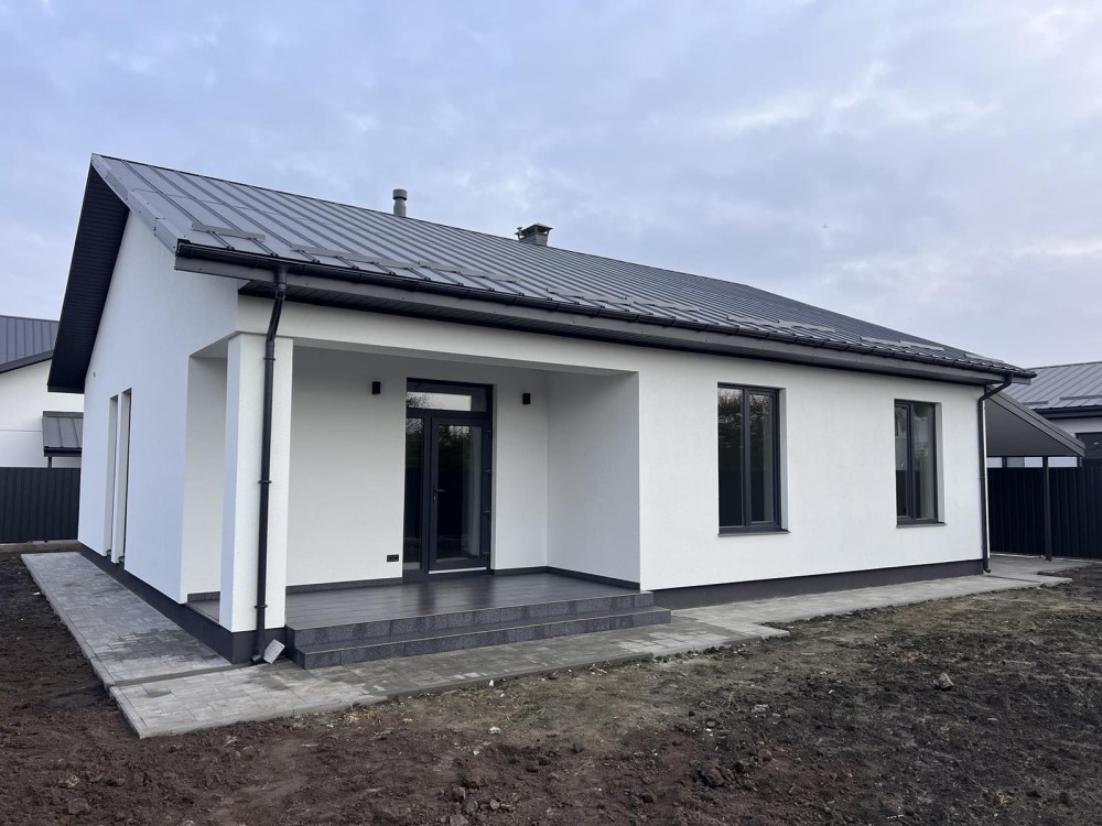 До продажу пропонується 1-поверховий новий БУДИНОК загальною площею 120 кв. м. Будинок розташований на правій частині міста, в закритому котеджному містечку на 9 будинків.