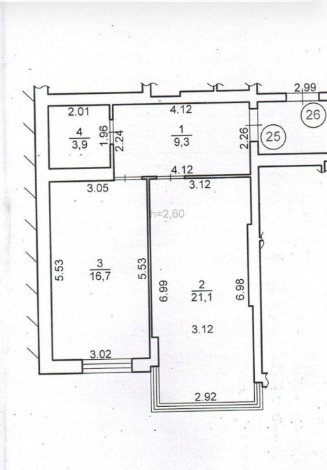 Стіни з гіпсової штукатурки. Проведено дві траси кондиціонування.