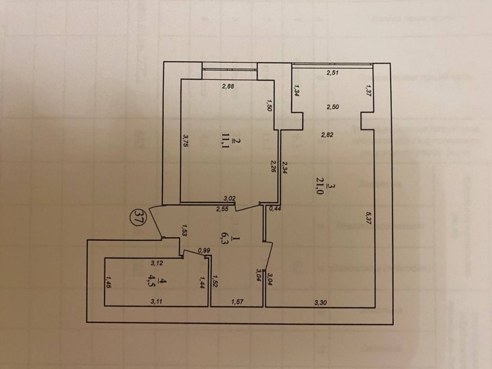 Загальна площа квартири- 42,9 м2, жила- 21 м2 , кухня-11,1 м2.