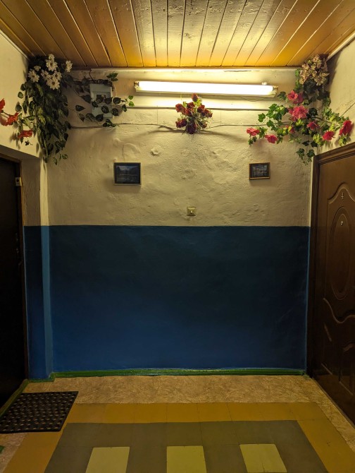 Затишний, тихий двір. Поруч лікарня, гімназія, дитячий садок, магазини. Зупинка маршрутки біля будинку.