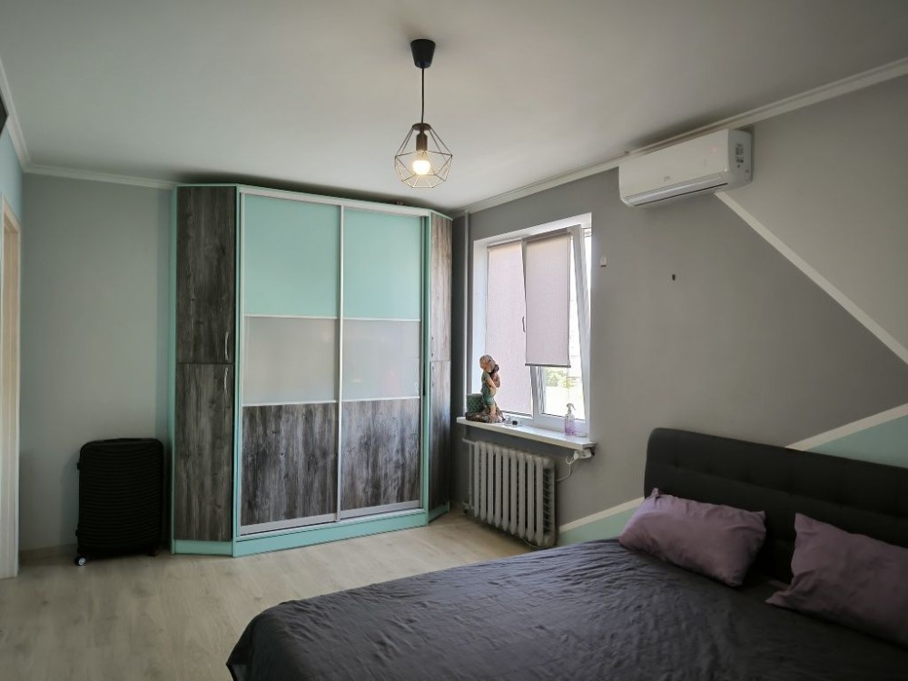 пластиковые окна, бойлер, металлическая входная дверь (красный декор), 15минут пешком до центра,есть рядом супермаркет,остановки с регулярным автобусами в разные стороны города, тихий район,рядом школа .