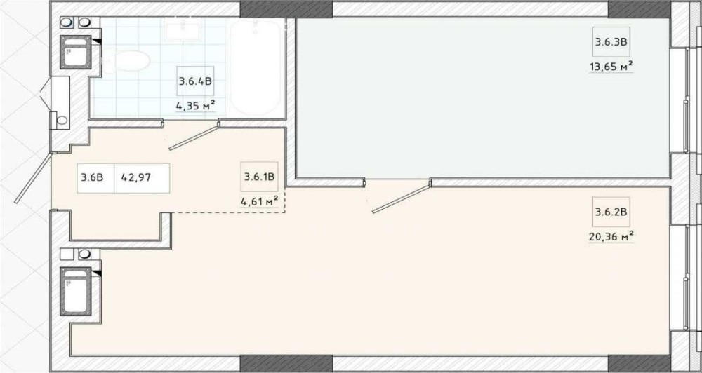 Площа 43м²