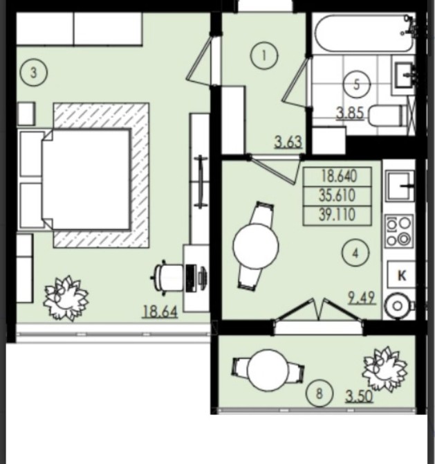 • Общая площадь 39.11 м2