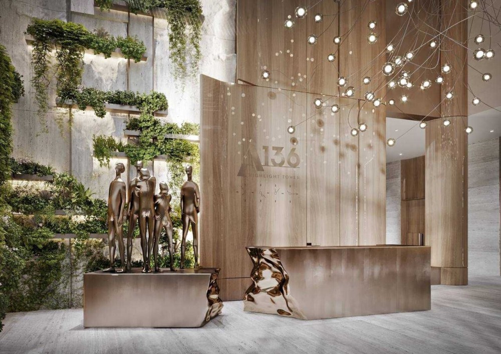 За проєктом в лобі комплексу буде лаунж зона, а на перших комерційних поверхах планують відкрити ресторан, хімчистку, магазини, фітнес-центр зі спа зоною та бізнес простором.