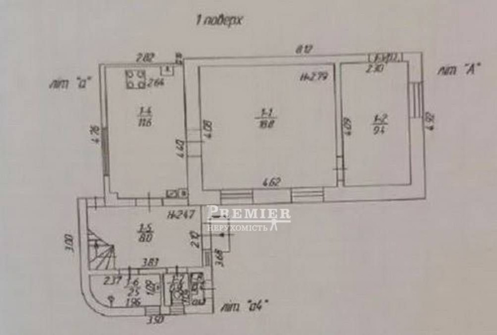 Перший поверх: передпокій, кухня, вітальня, спальня, роздільний санвузол;