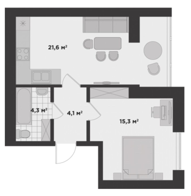 • Общая площадь 45 м2