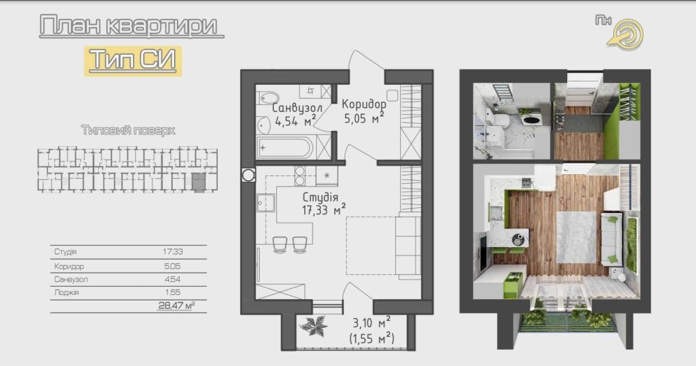 Загальна площа: 37.42м2