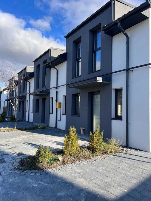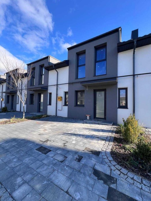 Стильний ТАУНХАУС - два поверхи, внутрішній, утеплення фасаду 15 см пінопласт, монолітний фундамент з гідроізоляцією, дах - якісна металочерепиця. Повний комплекс благоустрою території (бруківка, озеленення переднього двору, вихід на широку терасу з вітальні).