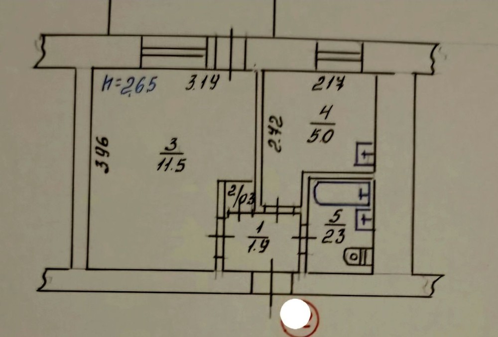 • Площадь кухни 5 м2
