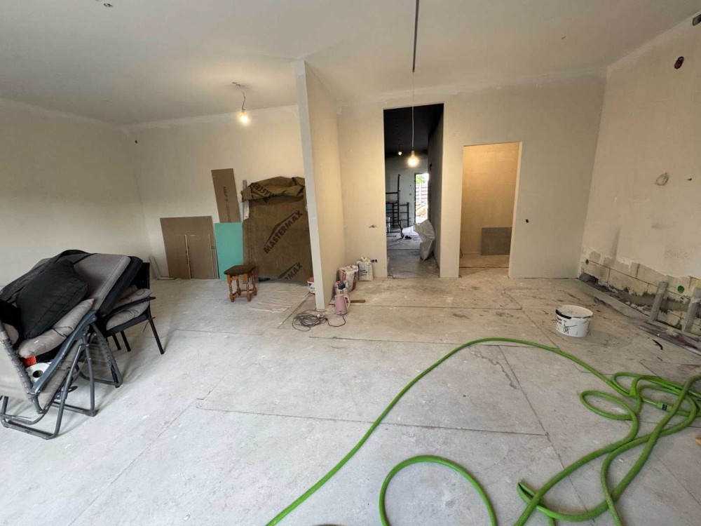 Продам таунхаус з частковим ремонтом, зроблено розведення опалення, світло, каналізація, уставлені бак, фільтр, виводи під сантехніку, є стяжка, гіпсокартонові стелі, є свердловина, газ