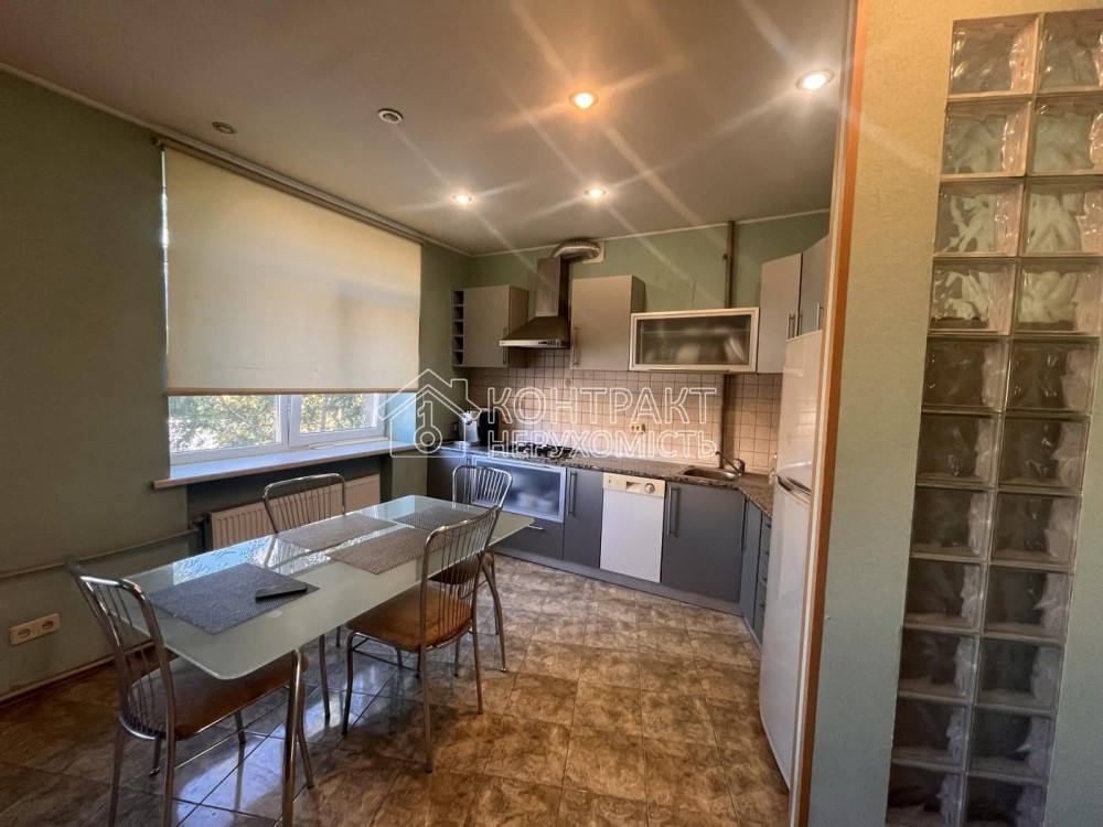 Квартира світла, простора, з неймовірною позитивною енергетикою та культурою атмосферою, освітлення варіативне, з багатьма точковими основними та додатковими світильниками. Частина вікон та один балкон виходить у тихий затишний дворик, частина - з видом на Харківську набережну.