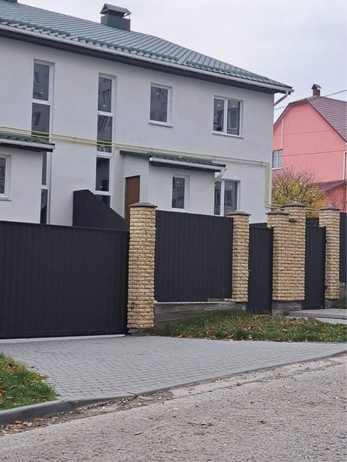 Площадка перед котеджем та заїзд в гараж-бруківка. Металевий забор, ворота.