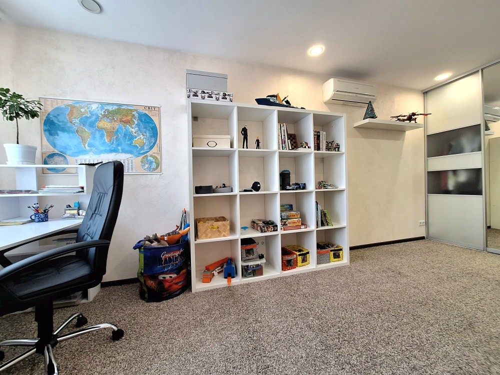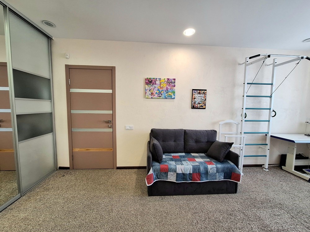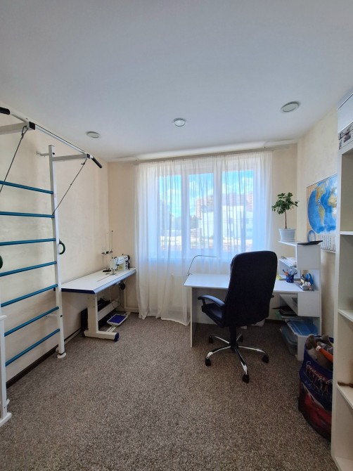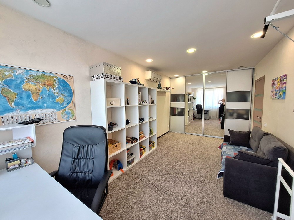 Квартира має зручне та функціональне перепланування на лоджію винесена кухня , є окрема спальна кімната та гостьова кімната з виходом на кухню, суміжний санвузол та ванна кімната.