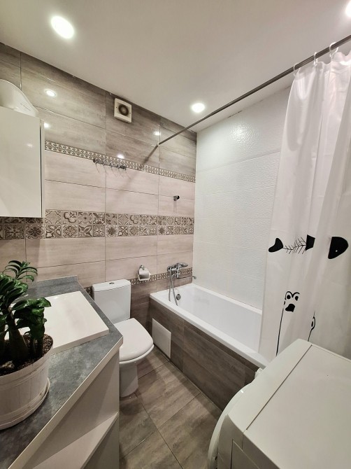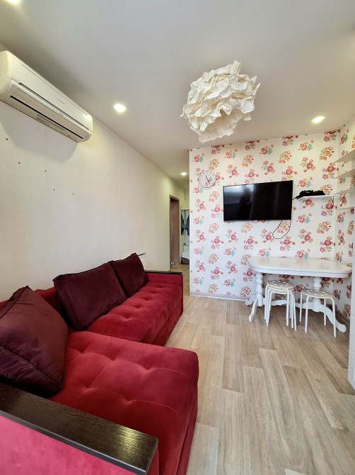 Квартира укомплектована всією необхідною технікою та меблями для комфортного проживання, а саме: Вбудована кухня з витяжкою, газова варочна поверхня, духова шафа, посудомийна машина, холодильник, стіл та стілтці, телевізор, два кондиціонера, два розкладних дивани, велика та вмістка шафа-купе в спальній кімнаті, пральна машина.