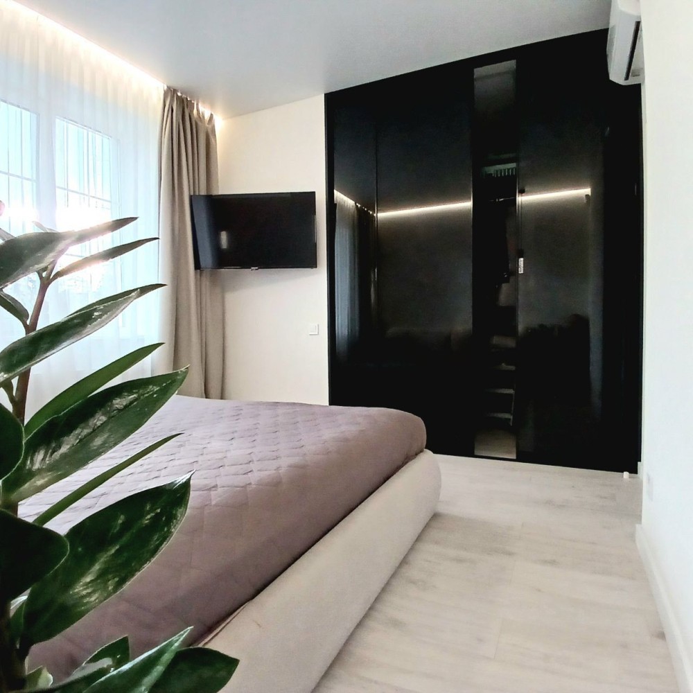 Кімнати: 3 спальні, гостьова-кухня студія з островом та каміном, тамбур, лоджія, гардеробні