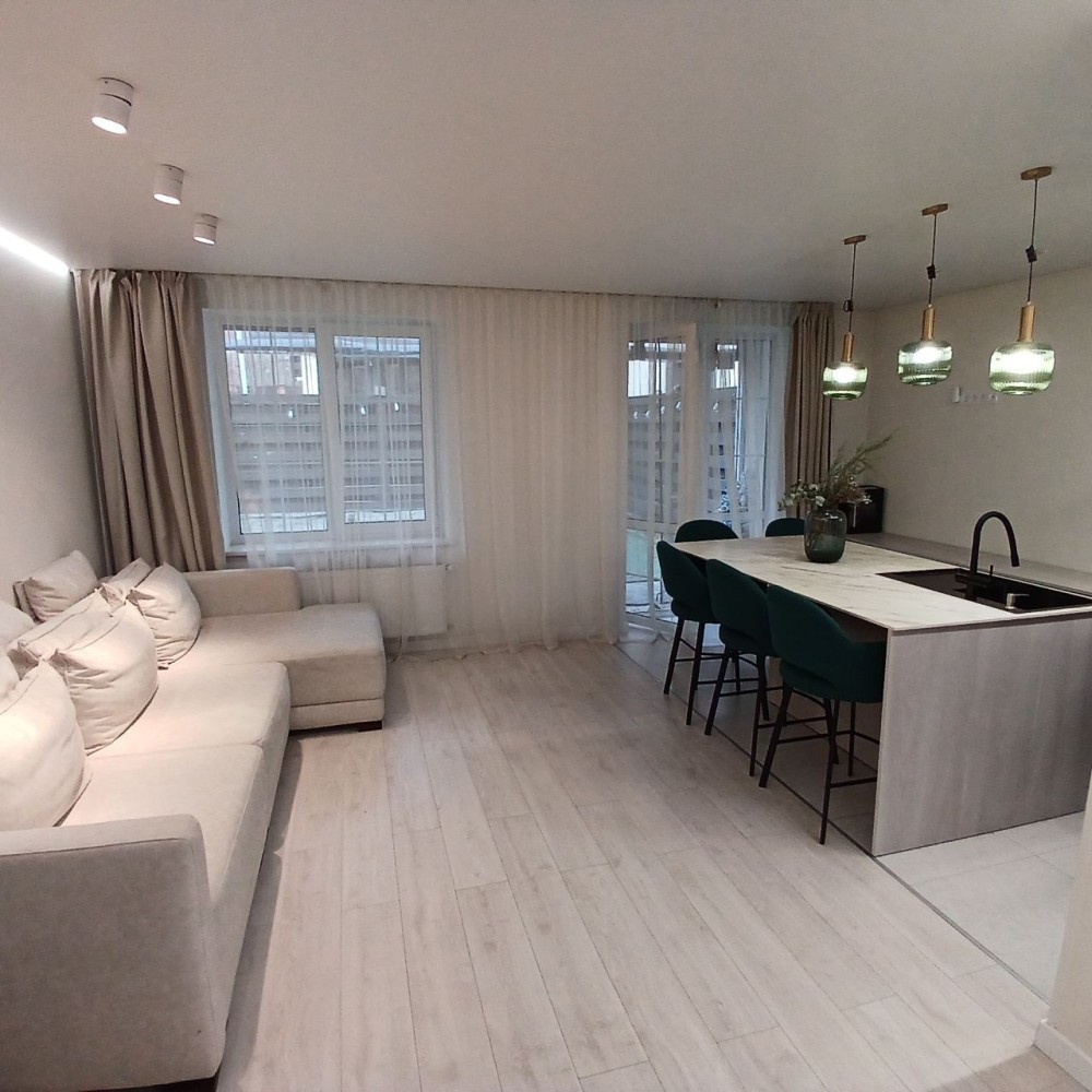 Простора кухня-студія з островом, сучасна техніка Gorenje, Whirlpool, Interline, стильні та практичні меблі