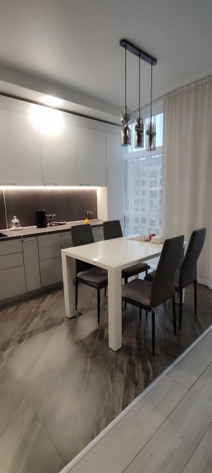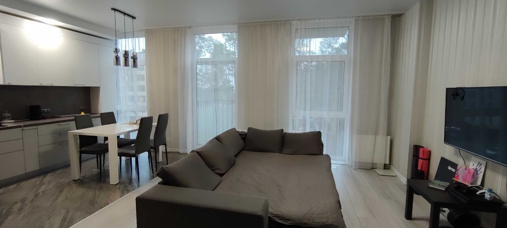 Площа квартири складає 67,5м2 (має велику простору кухню-вітальню, з додатковим спальним місцем. Є два балкони. Та розташована на 6 поверсі.