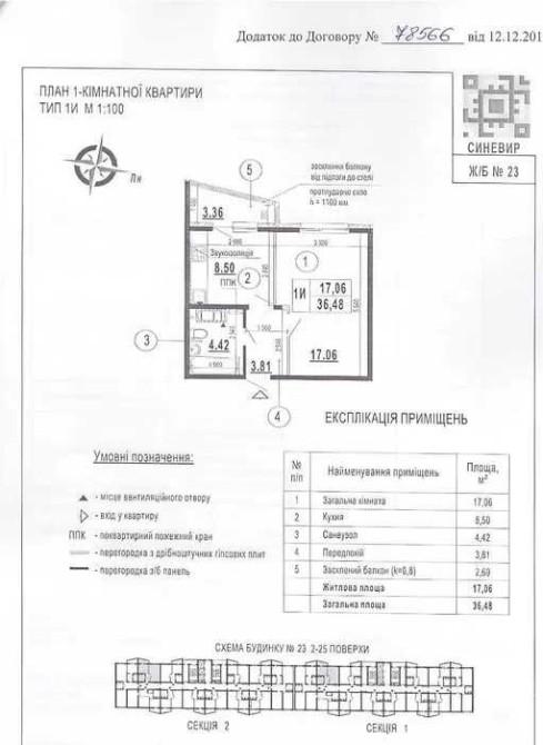 1-к, загальною площею 36.6 м.кв.,