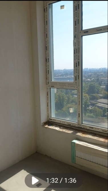 Загальна площа 34м2, кухня 5м2, кімната 18м2 з виходом на балкон 1,8м2, санвузол 4,4м2, коридор 4,8м2, висота стелі 2,7м, якісні вхідні двері, з вікнами REHAU шум не буде заважати (на фото вид з вікна прямо і вниз).
