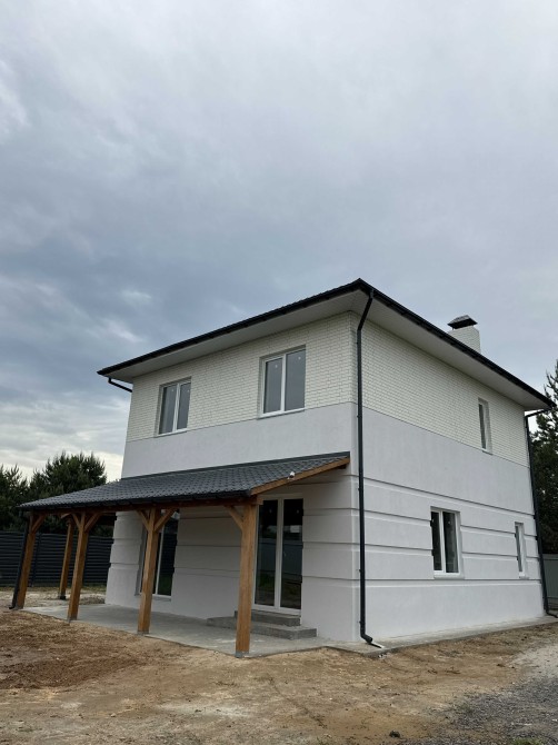 Продається сучасний двоповерховий будинок з терасою в селі Бобриця, Київська область (біля Білогородки), зручний виїзд на Житомирську трасу, 20–30 хвилин до Києва.