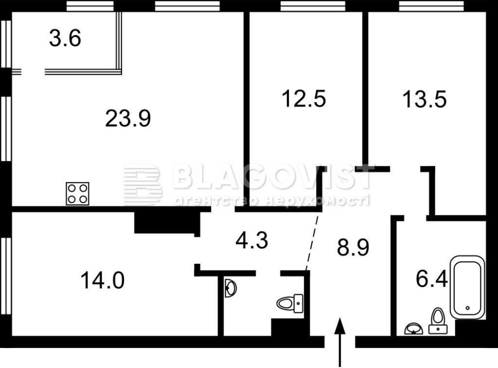 • Трехкомнатная