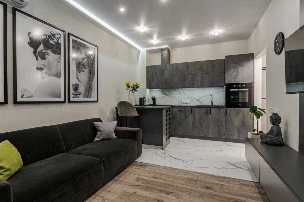 Квартира має зручне та сучасне планування: простора кухня-вітальня, майстер-спальня, окрема гостьова спальня, санвузол. Ідеальний варіант для сім’ї або для тих, хто цінує простір і комфорт.