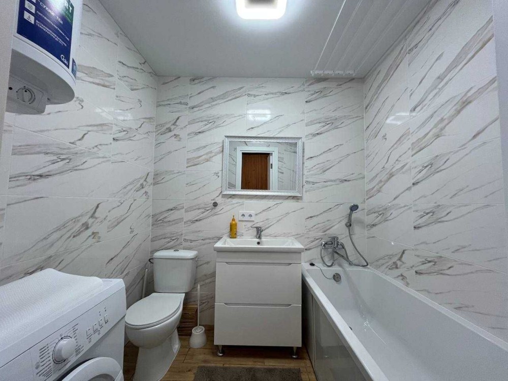 * Санвузол суміщений - ванна, бойлер, пральна машина.