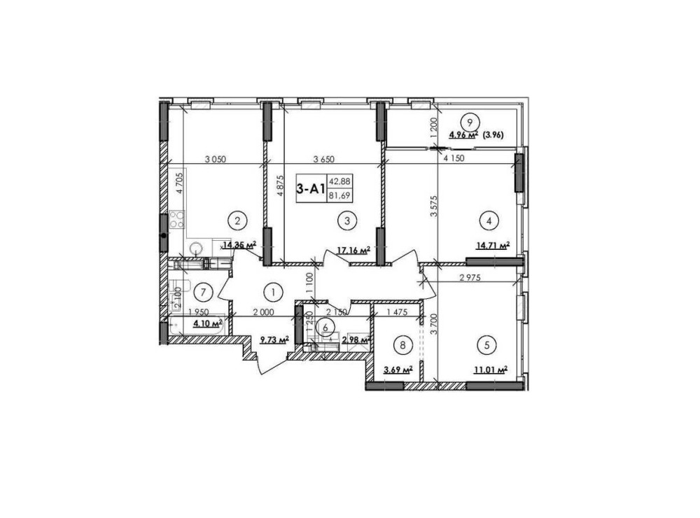 - Трехкомнатная