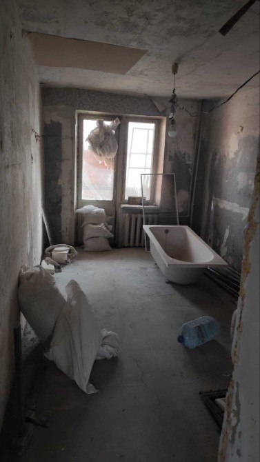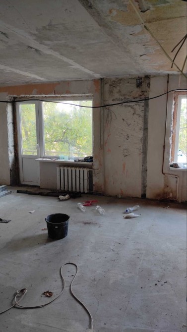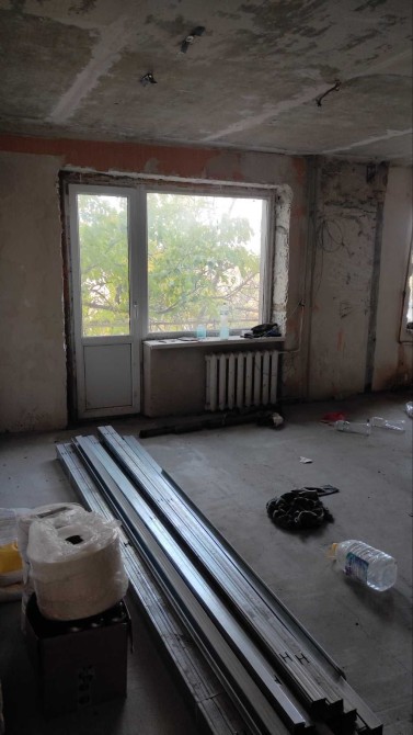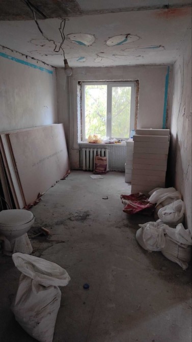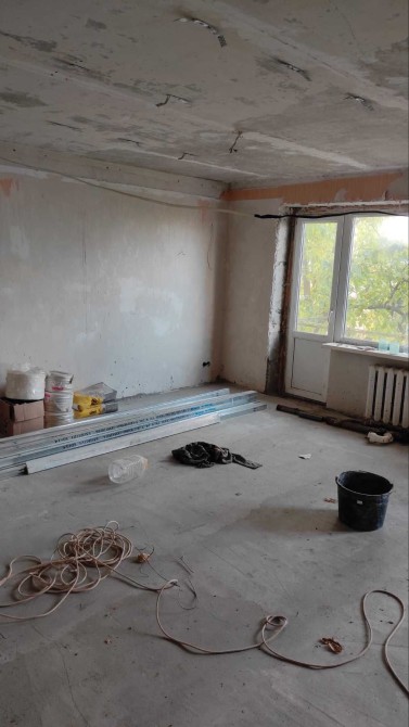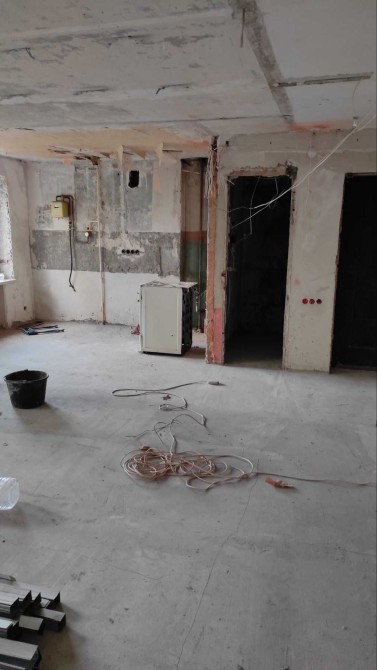 Начат ремонт , выполнена стяжка , остается закупленный стройматериал .