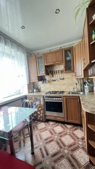 Квартира знаходиться на 5-му поверсі в центрі будинку, дах відремонтований - не протікає. Ззовні утеплена, вікна виходять на 2 сторони. Має індивідуальне опалення, рахунок взимку біля 2000 грн. Ванна кімната суміжна, балкон засклений.