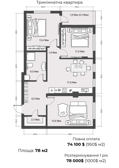 Площа: 78 м2