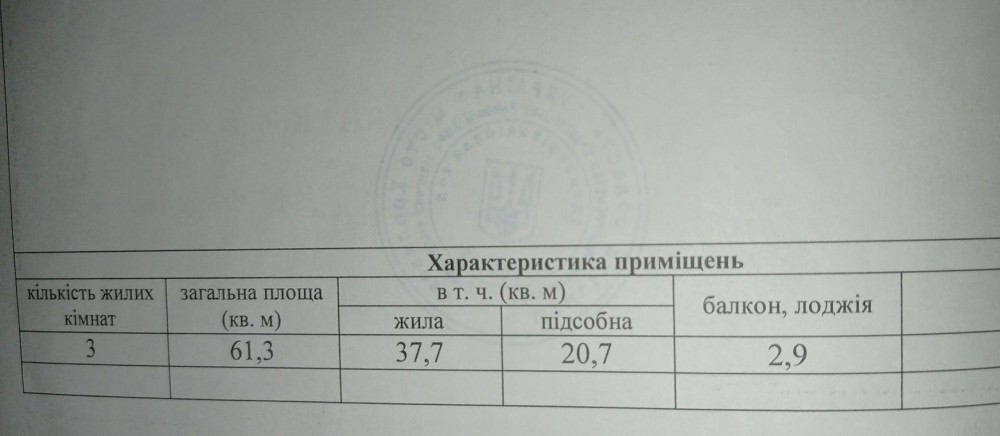Загальна площа 61.3м²