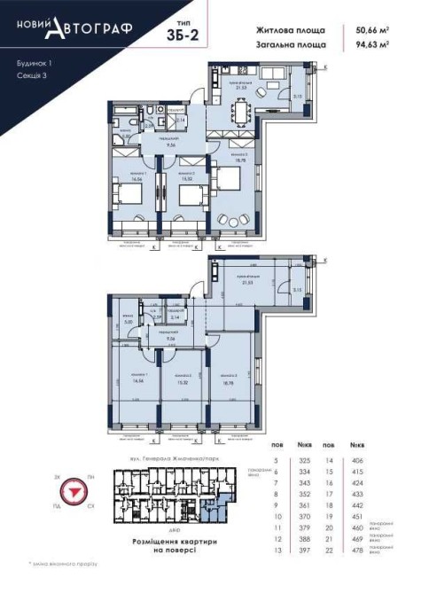 Трикімнатна квартира в ЖК Новий Автограф 5 поверх 96м2 на сквер єОселя - фото 2