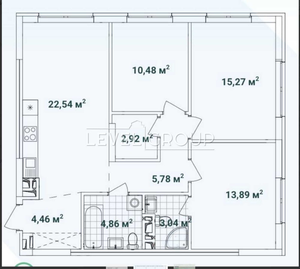 • Площадь кухни 22.54 м2