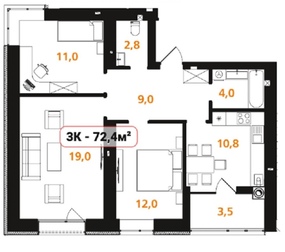 • Общая площадь 72.4 м2