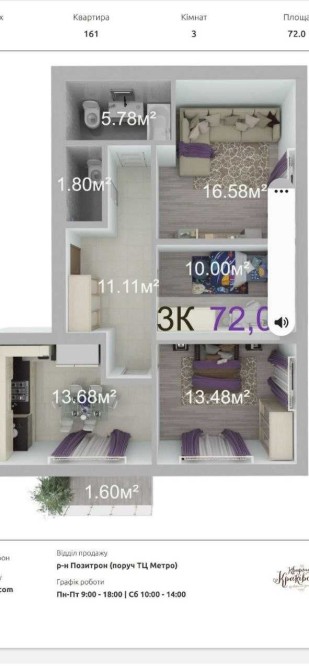 Трикімнатна квартира з балконом