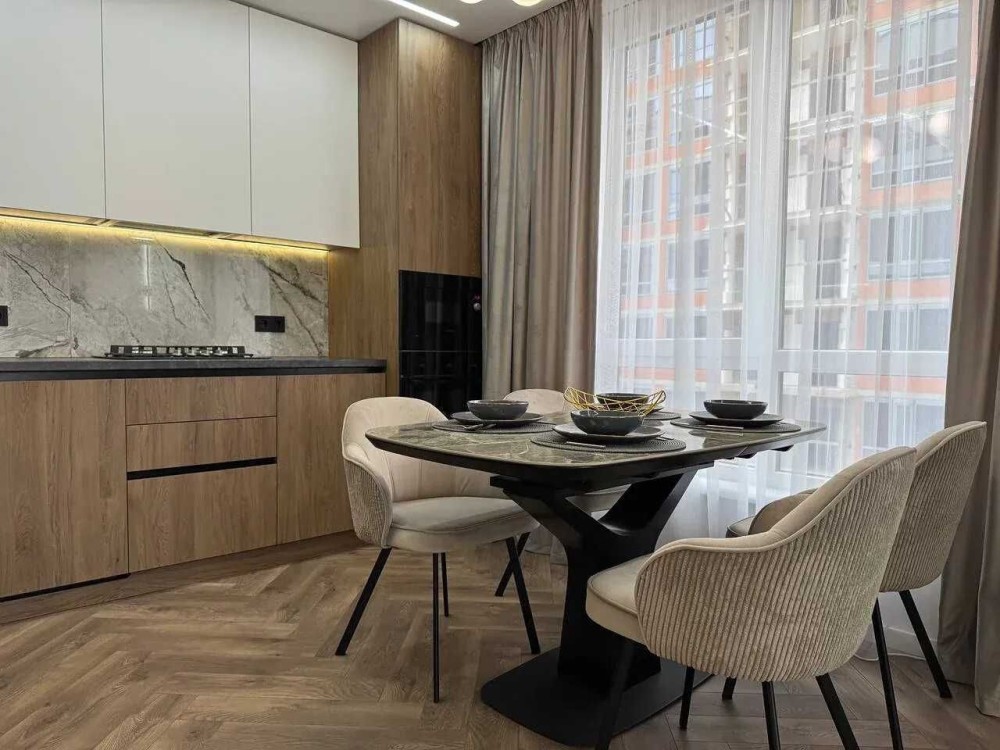 Продається дизайнерська трикімнатна квартира з великою кухнею-студію та двома окремими кімнатами в сучасному житловому комплексі Family Plaza.