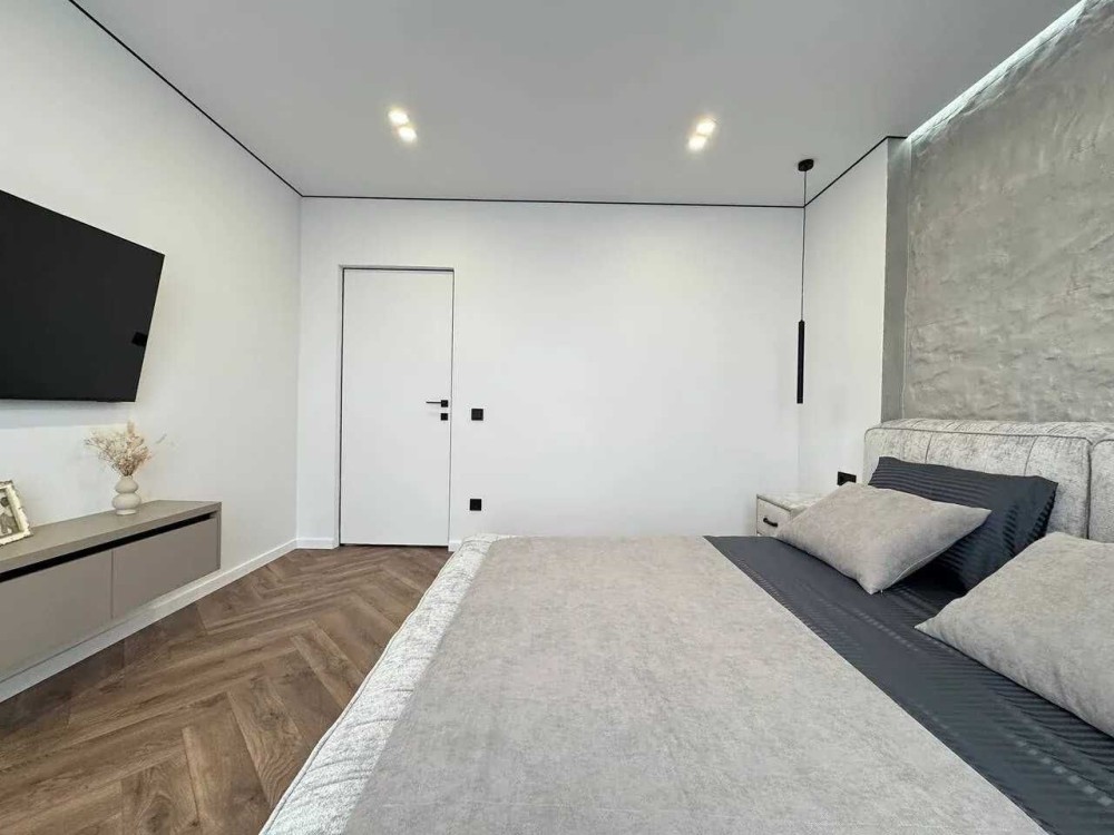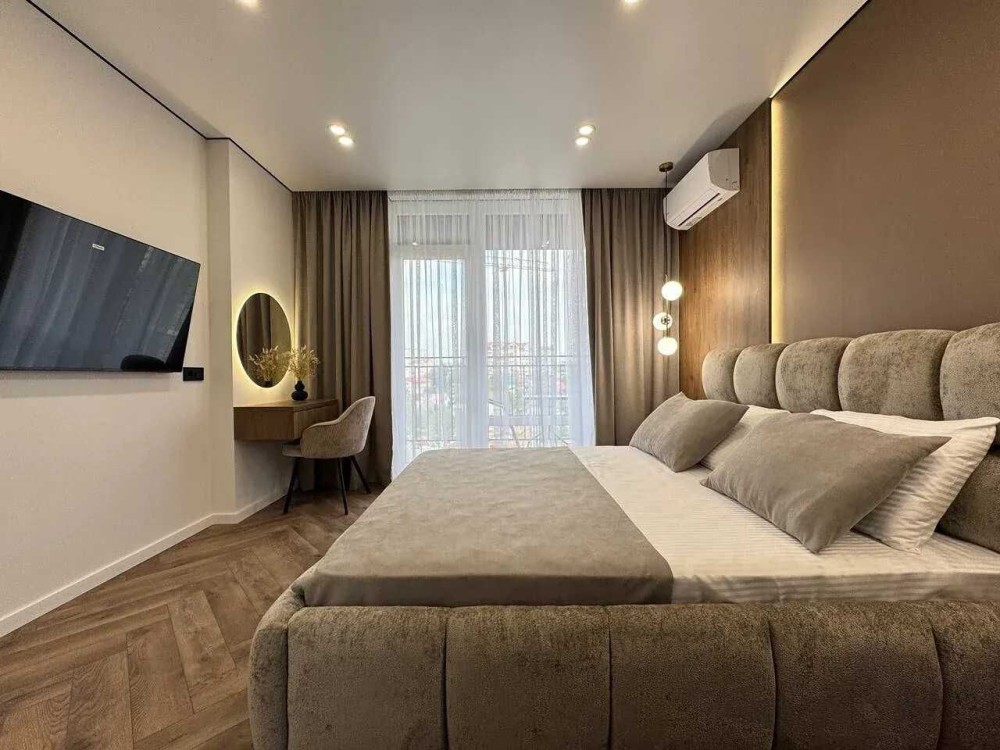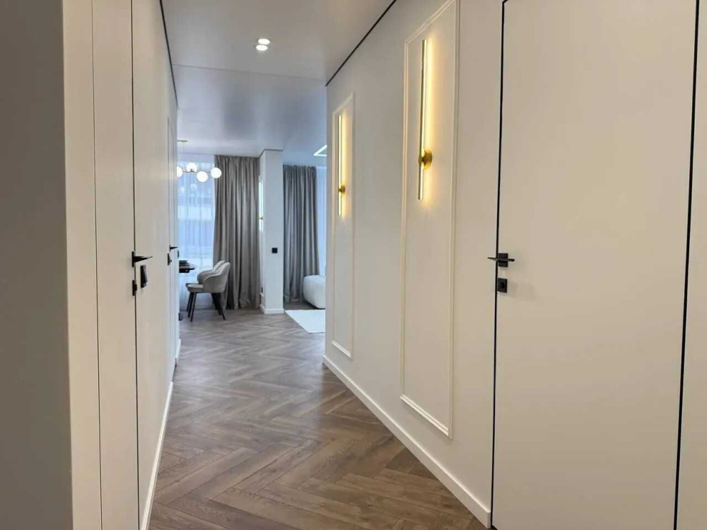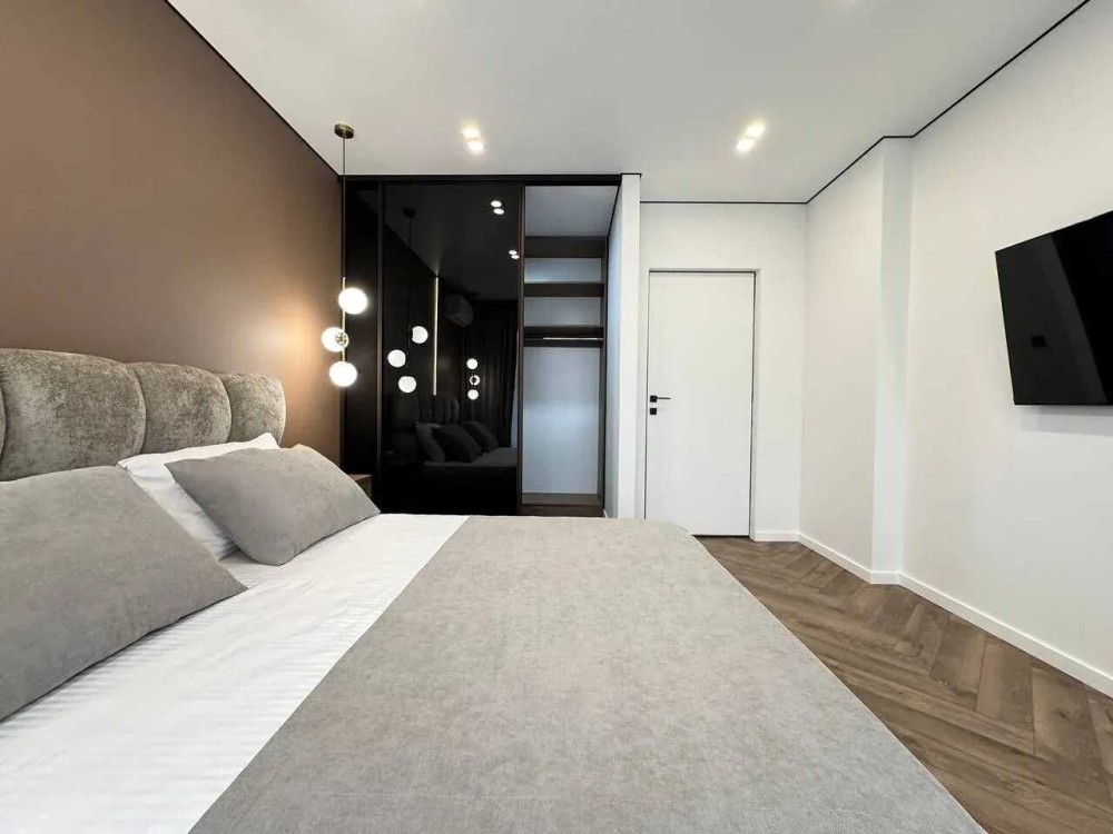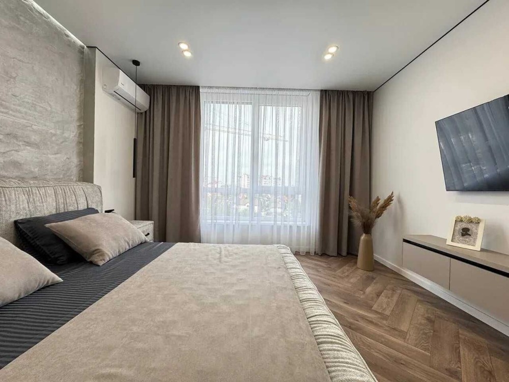 Квартира розташована на зручному шостому поверсі з одинадцяти з функціональним плануванням. Загальна площа квартири 90м2, планування квартири включає в себе просторий коридор, велику кухню-студію, два санвузли, вмістку гардеробну, світлу спальню та батьківську спальню з великим відкритим балконом. Зроблений стильний та якісний ремонт при якому використовувались надійні та перевірені матеріали.
