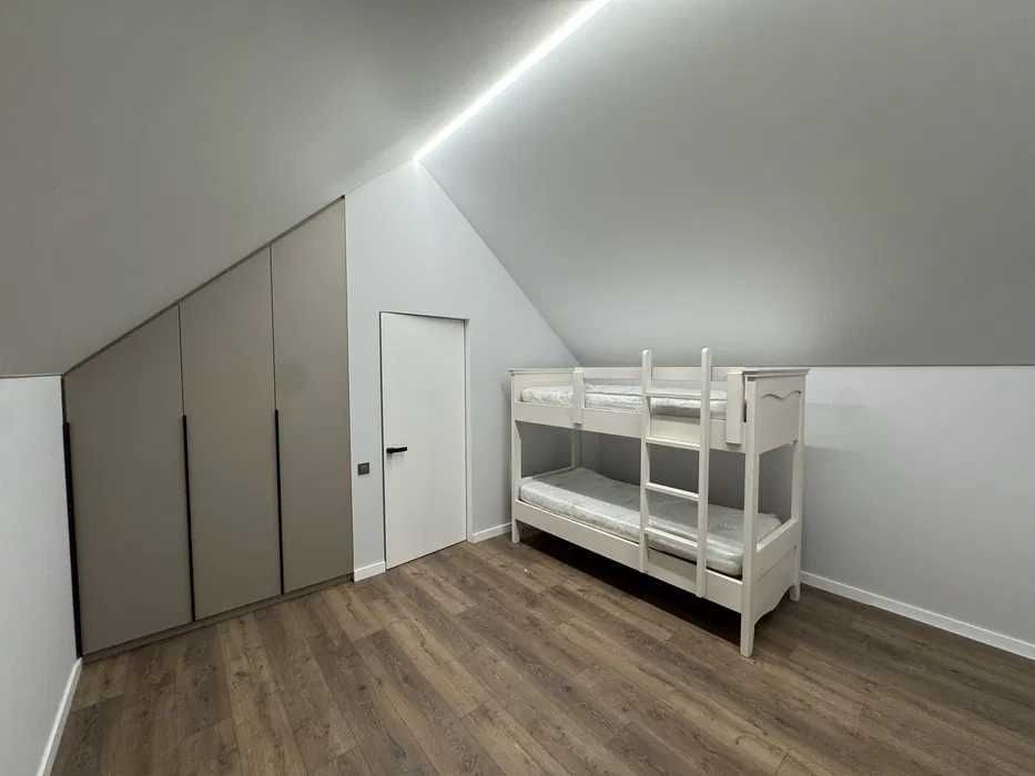 На першому поверсі розташовані світла й простора кухня, зручна гардеробна та охайний санвузол. На другому — велика кімната, яка може слугувати як спальнею, так і затишною вітальнею, а також ще один просторий санвузол. Третій поверх відведено під дитячу кімнату та окремий робочий кабінет, що особливо зручно для сімей, яким важливо поєднати побут і роботу.