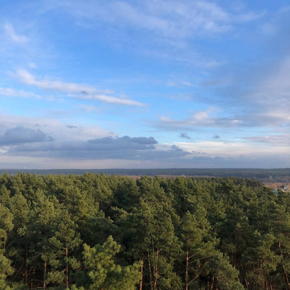 - кухня-вітальня 19 м² з панорамним видом на сосновий парк