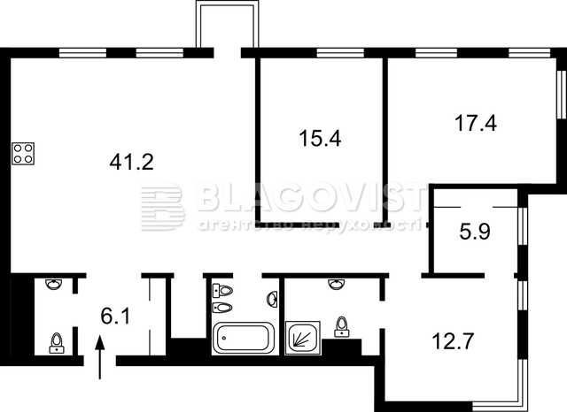 3-ри кімнатна, 14-й поверх, площа: 122\45,5\41,2.
