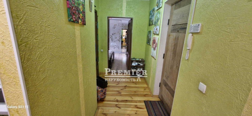 Три окремі кімнати, кухня, два санвузли (душ та ванна), балкон, прибудова під якою є підвал. У квартирі гарний житловий стан.