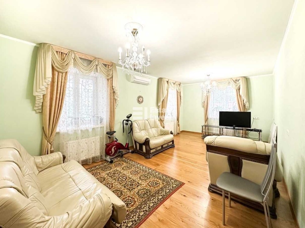 Будинок цегляний, дерев'яні перекриття, дах-металочерепиця, фундамент залізобетон, пластикові вікна, кондиціонери, два санвузли. Меблі залишаються за домовленістю.