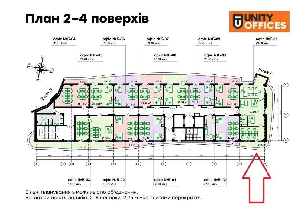 У продажу офіси на 2, 3, та 4 поверхах