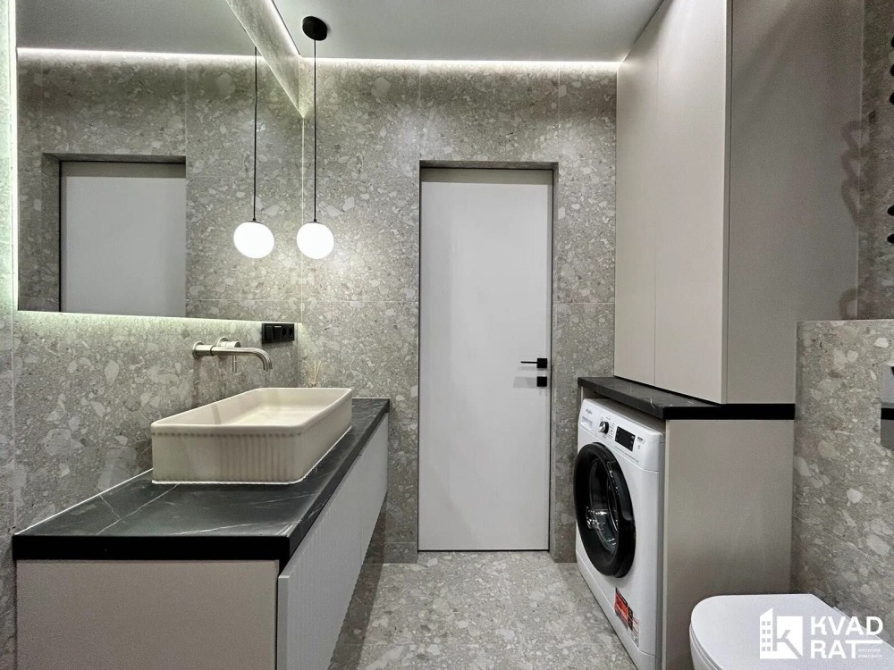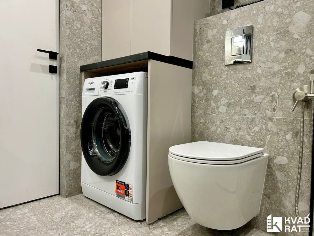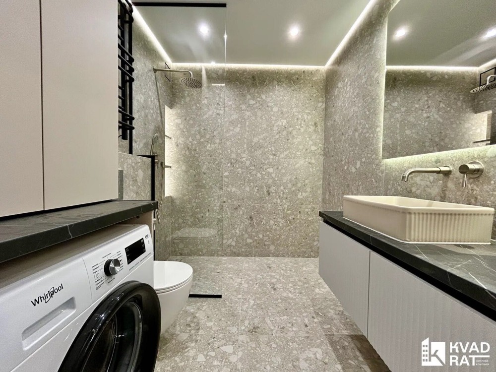 – просторий санвузол з душовою кабіною та пральною машиною