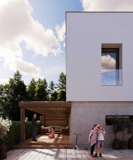 просторий та сучасний дуплекс площею 111 кв.м., розташований у мальовничій лісовій зоні Бучі. Земельна ділянка – 2,5 соток.