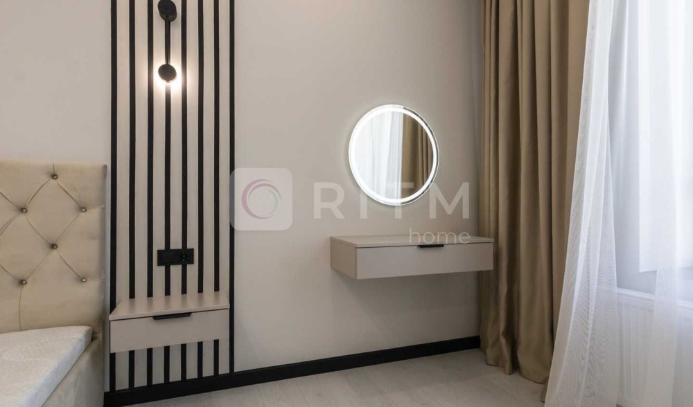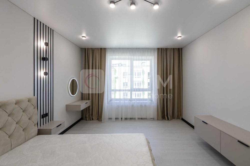 В спальні є велика містка шафа, двоспальне ліжко, б'юті зона, приліжкові тумби