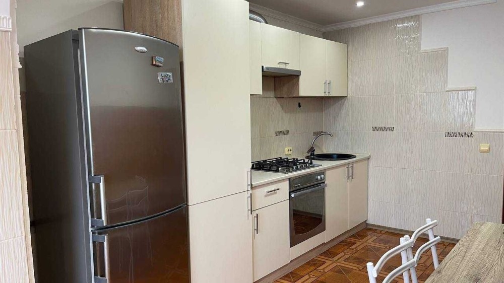 Кімната з виходом на балкон. Квартира повністю укомплектована: вмонтована кухня, холодильник, газова поверхня, диван і т.д.