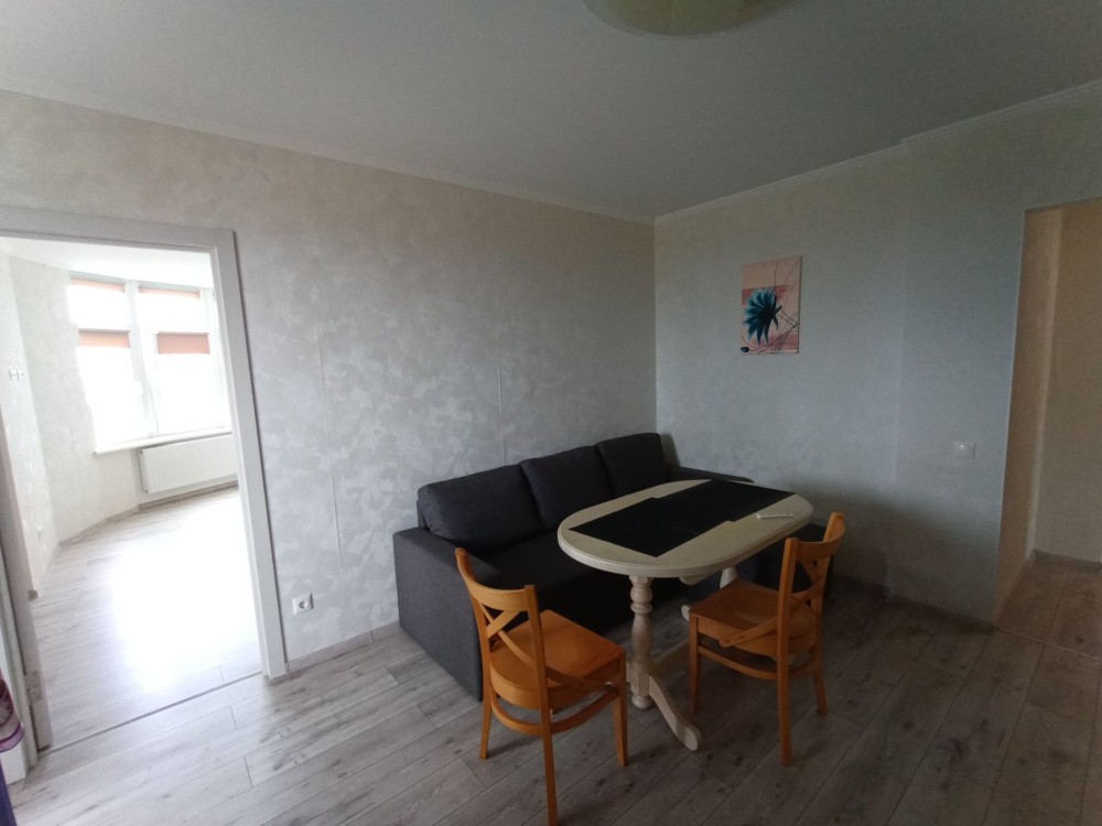 Квартира меблевана є двоспальне ліжко, розкладний диван, шафа-купе, шафа, кухонні меблі.